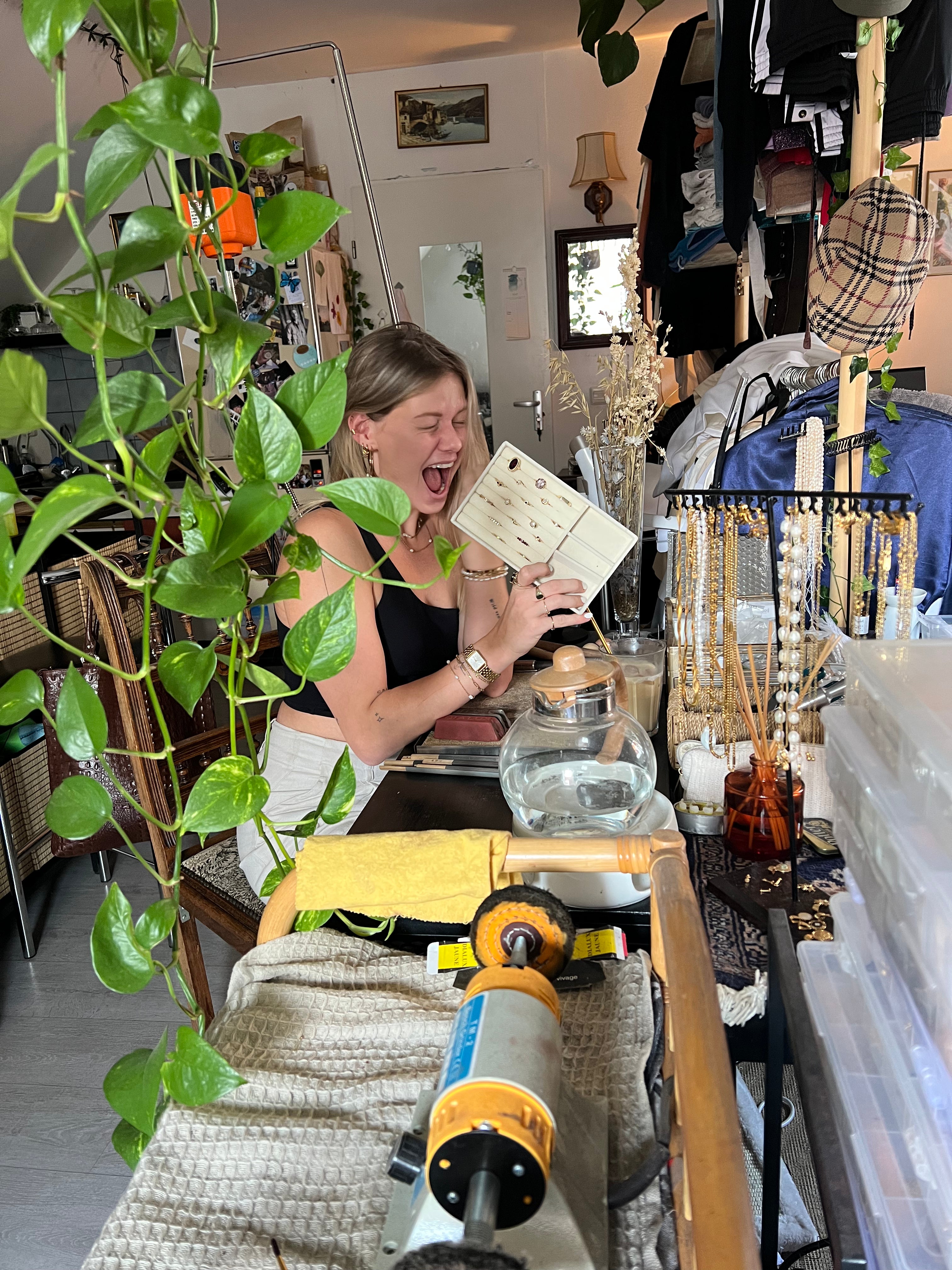 Since I was unable to find jewelry trays that fit my vision, I decided to create my own! I took pottery lessons for a year, and that’s how our unique market stall was born. I’m joining a new course in 2025 to make it even more fun and aesthetic.